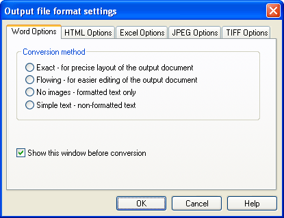Convert PDF documents to editable file formats such as DOC, RTF, TXT, HTML